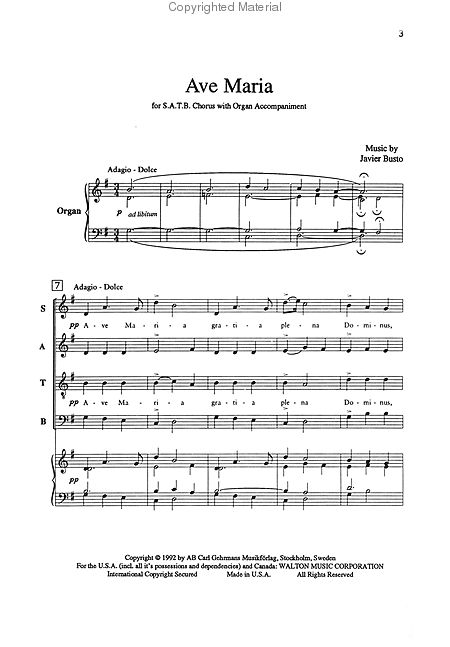Busto Ave Maria, for SATB (div.) Chorus with Organ Accompaniment. [15-Copy Minimum]