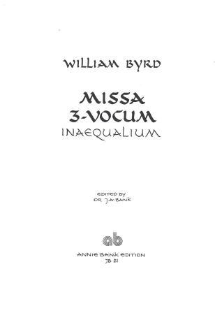 Byrd Missa 3-Vocum Inaequalium (Mass for 3 Voices), for STB Chorus, Unaccompanied. Edited by Dr. J.A. Bank
