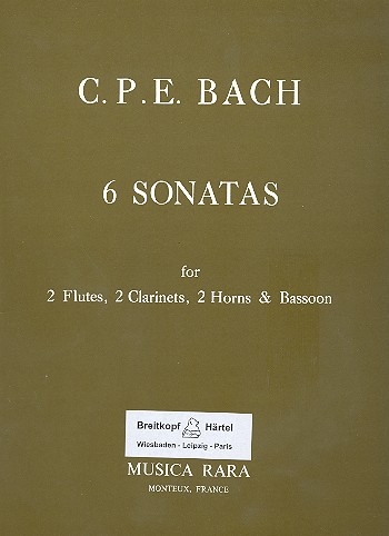 C.P.E. Bach Six (6) Sonatas, Wq 184, for 2 Flutes, 2 Clarinets, 2 Horns, and Bassoon. Edited by Kurt Janetzsky. Score and Parts.