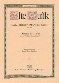 C.P.E. Bach Sonata in G Major, Wotq 157, for Two Violins and Basso Continuo. Arranged by Bruno-Hinze-Reinhold.