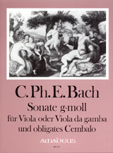 C.P.E. Bach Sonata in G Minor for Viola (or Viola da Gamba) & Harpsichord Obligato, Wq 88. Score & Parts.