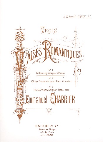 Chabrier Trois Valses Romantiques. Original Version for 2 Pianos. Set of Parts.
