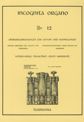 Chorale Preludes for Advent and Christmas. 8 Chorale-Based Works by Vetter, Heuschkel, Buttstedt, Sorge, Erich. Incognita Organo, Vol. 12. Edited by E. Kooiman.