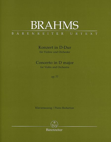 Brahms Concerto in D Major, Op. 77, for Violin & Orchestra. Reduction for Violin & Piano by the Composer. Urtext Edition, with Various Cadenzas, by Clive Brown.