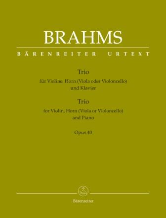 Brahms Trio, Op. 40, for Violin, Horn (Viola or Cello), and Piano. Urtext Edition by Christopher Hogwood. Piano Playing Score + 4 Parts.