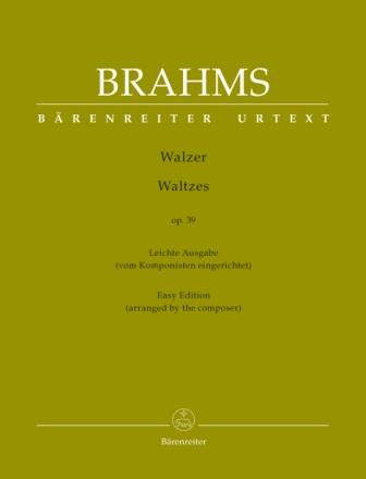 Brahms Waltzes, Op. 39. Easy Edition, Arranged by the Composer. Urtext Edition with Fingering by Christian Koehn.