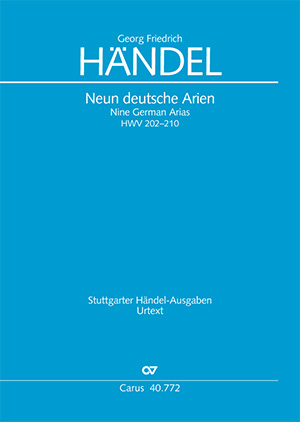 Handel Nine (9) German Arias for Soprano, Solo Instrument Obbligato (Flute/Oboe/Violin), & Basso Continuo, HWV 202-210. Score + 2 Parts.