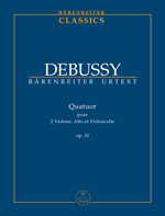 Debussy String Quartet in G Minor, Op. 10. Urtext Edition by Douglas Woodfull-Harris. Set of Parts for 2 Violins, Viola, Cello.