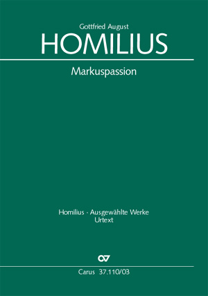 Homilius Markuspassion (St. Mark Passion), HoWV I.10, for Soloists, Chorus, and Orchestra. Edted by Uwe Wolf. Full Score.