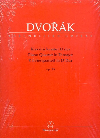 Dvorak Piano Quartet in D Major, Op. 23, for Piano, Violin, Viola, & Cello. Urtext Edition with Critical Commentary by Robin Tait. Piano Playing Score & Parts.