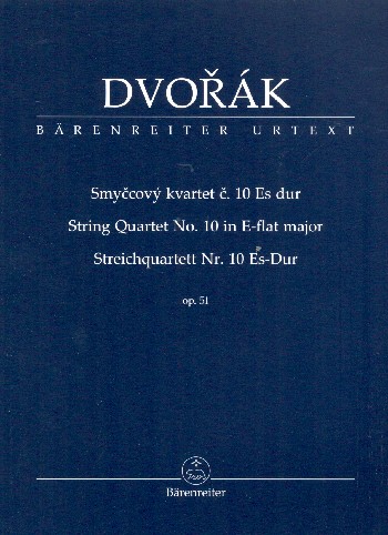 Dvorak String Quartet No. 10 in E-Flat Major, Op. 51, for 2 Violins, Viola, and Cello. Urtext Edition by Hartmut Schick. Study Score.