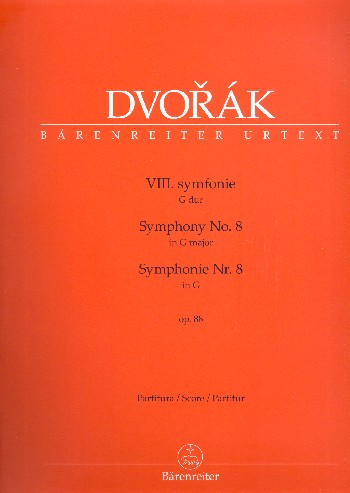 Dvorak Symphony No. 8 in G Major, Op. 88. Urtext Edition by Jonathan Del Mar. Full Score.