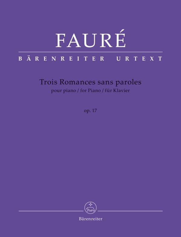 Faure Trois Romances sans paroles, Op. 17, for Piano. Urtext Edition by Jean-Pierre Bartoli.