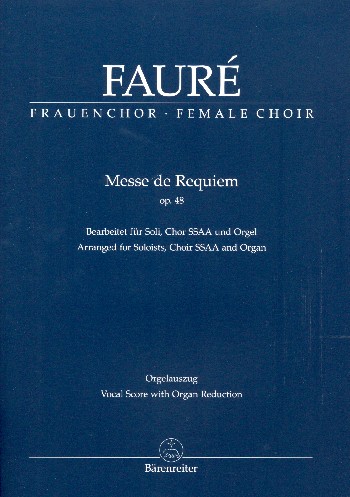 Faure Requiem, Arrnaged for Soloists and SSAA Choir by Malcolm Bruno. Vocal Score with Organ Reduction by Ingo Bredenbach.