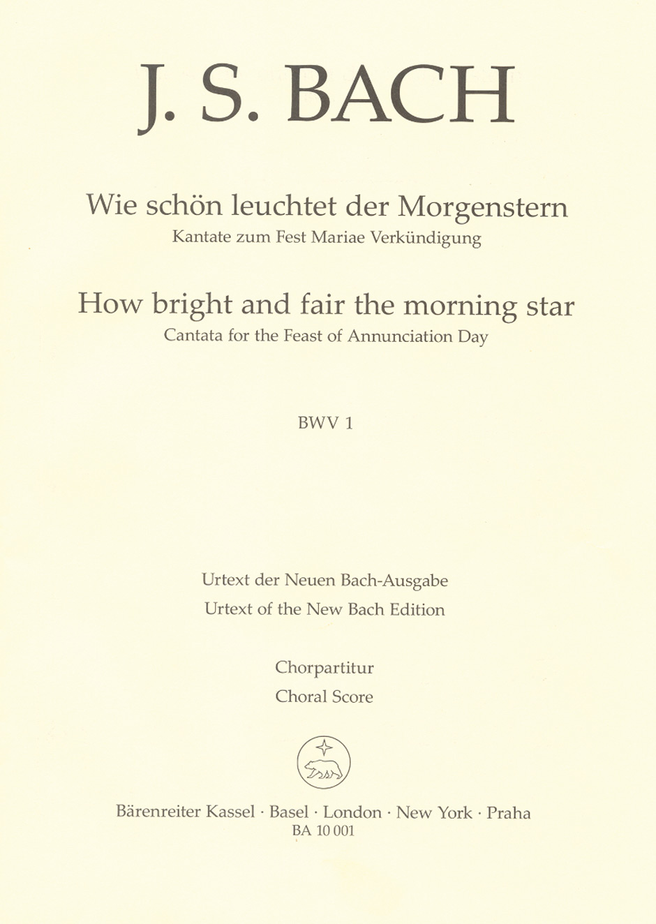 Bach Cantata 1: Wie schon leuchtet der Morgenstern, BWV 1, Study Score