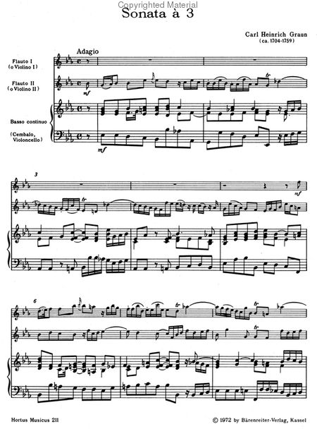Graun Sonata in E-Flat Major, 2 Flutes & B.C.