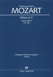 Mozart Mass in C Major, K. 258 ("Spaur-Messe"), for SATB Soloists, SATB Choir, and Orchestra. Edited by Janz Bernhard. Vocal Score.