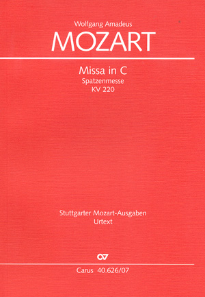 Mozart Mass in C Minor, K. 220 (Spatzenmesse / Sparrow Mass), for SATB Soloists, SATB Choir, and Orchestra. Edited by Berthold Over. Vocal Score.