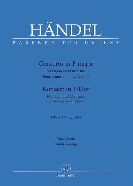 Handel Organ Concerto in F Major, HWV 292, Op. 4, No. 4. Fourth Movement with Choir. Urtext Edition by Terence Best & William D. Gudger. Full Score