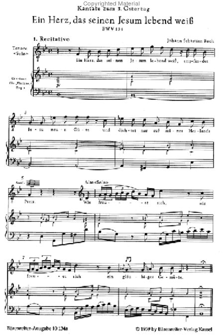 Bach Cantata 134: Ein Herz, das seinen Jesum lebend weiß, BWV 134, Organ Part