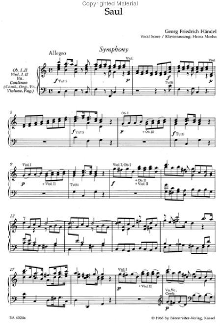 Handel Saul, HWV 53. Oratorio in 3 Parts for SATB Soli, SATB Choir, and Orchestra. Urtext. Vocal Score