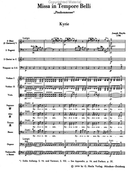 Haydn Missa in Tempore Belli (Paukenmesse / Mass in Time of War), for SATB Soloists, SATB Chorus, & Orchestra. Urtext Ed. by H.C. Robbins Landon. Study Score