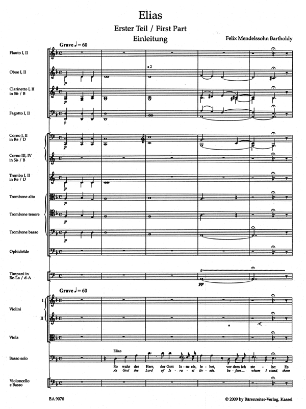 Mendelssohn Elijah (Elias), Op. 70. Oratorio for SATB Soloists, Chorus, and Orchestra. Urtext Edition by Douglas Seaton. Vocal Score. English & German Texts.