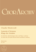 Monteverdi Lamento d'Arianna (Monodia) + Pianot della Madonna, for Solo Voice and [Unrealized] Basso Continuo. Urtext Edition. Score + Parts.