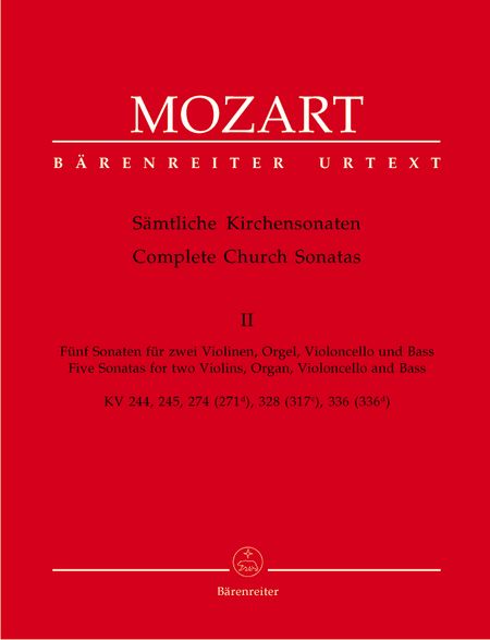Mozart Complete Church Sonatas, Vol. 2: 5 Sonatas for two Violins, Organ, Violoncello and Bass. Score & Parts
