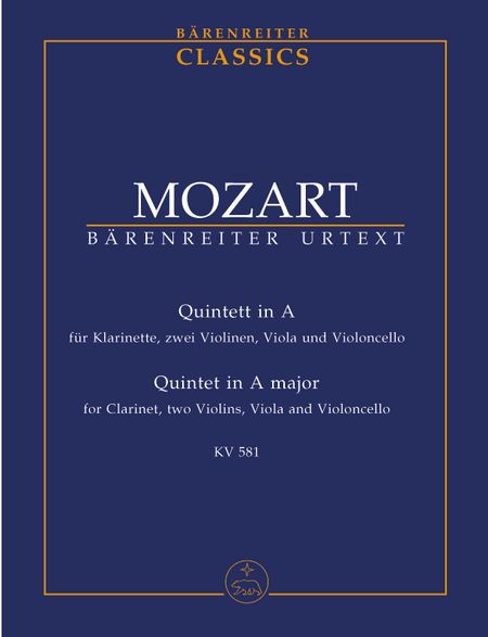 Mozart Clarinet Quintet in A Major, K.581, for Clarinet, 2 Violins, Viola, & Cello, Study Score