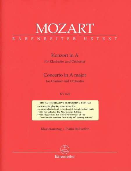 Mozart Concerto in A Major, K. 622, for Clarinet and Orchestra. Urtext. Reduction for Clarinet and Piano (Version for Clarinet in A) by Martin Schelhaas.