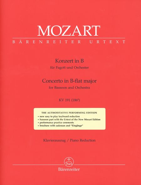 Mozart Concerto in B-Flat Major, K. 191. for Bassoon and Orchestra. Urtext Edition by Franz Giegling. Reduction for Bassoon and Piano.