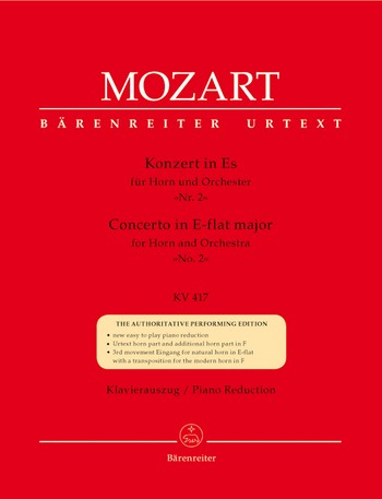 Mozart Concerto No. 2 in E-Flat Major, K.417, for Horn and Orchestra. Urtext Edition by Franz Giegling. Reduction for Horn and Piano