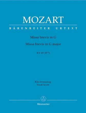 Mozart Missa Brevis in G Major, K. 49, for Soloists, Chorus, and Orchestra. Urtext Edition by Water Senn. Vocal Score