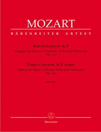 Mozart Piano Concerto No. 11 in F Major, K. 413. Version for Piano and String Quartet (2 Violins, Viola, Cello). Set of Parts.