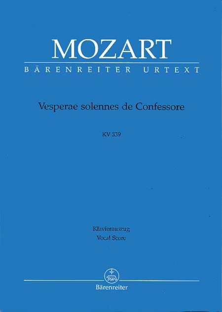 Mozart Vesperae solennes de Confessore (Solemn Vespers), K.339. Urtext Edition by Karl Gustav Fellerer and Felix Schroeder. Vocal Score