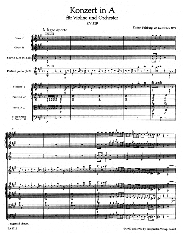 Mozart Violin Concerto No. 5 in A Major, K.219, Full Score