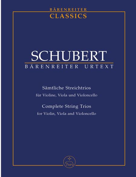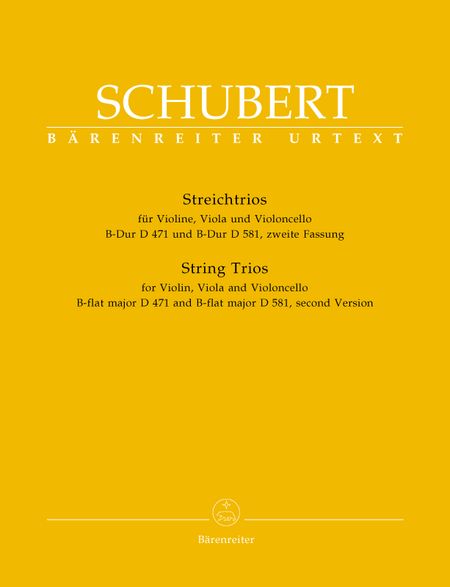 Schubert Complete String Trios (B-Flat Major, D 471 & B-Flat Major, D 581 Second Version), for Violin, Viola, & Cello. Urtext Edition by Werner Aderhold. Parts.
