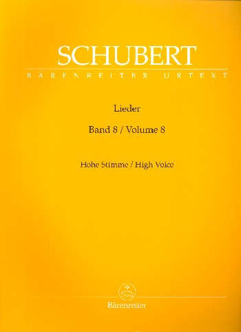 Schubert Lieder (Songs), Vol. 8. High Voice and Piano. Urtext Edition by Walther Durr. Contains the Lieder composed in the latter half of the year 1815.