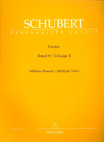 Schubert Lieder (Songs), Vol. 8. Medium Voice and Piano. Urtext Edition by Walther Durr. Contains the Lieder composed from the latter half of the year 1815.