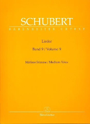 Schubert Lieder (Songs), Vol. 9. Medium Voice and Piano. Urtext Edition by Walther Durr. Lieder composed during the spring and summer of 1816.