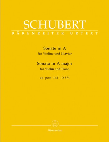 Schubert Sonata in A Major, D 574, Op. Posth. 162, for Violin and Piano. Urtext Edition by Helmut Wirth.