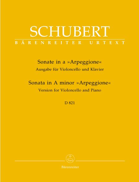 Schubert Sonata in A Minor ("Arpeggione"), D. 821, Arranged for Cello and Piano. Urtext Edition by Helmut Wirth. Arrangement of Cello Part by Klaus Storck.
