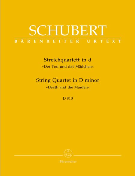 Schubert String Quartet in D Minor, D. 810 ("Death and the Maiden"), for 2 Violins, Viola, and Cello. Urtext Edition by Werner Aderhold. Set of Parts.