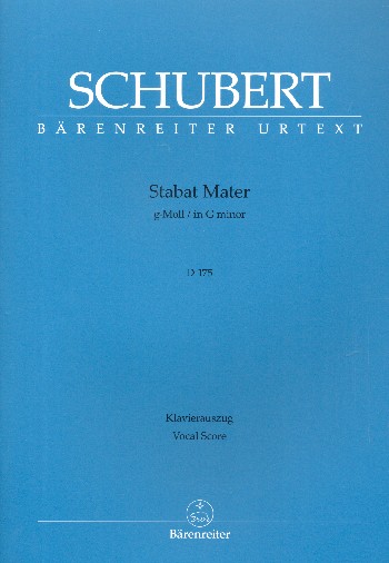 Schubert Stabat Mater in G Minor, D 175, for Mixed Choir and Orchestra. Urtext Edition by Rudolf Faber. Vocal Score.
