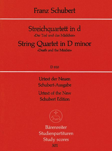 Schubert String Quartet in D Minor, D. 810 ("Death and the Maiden"), for 2 Violins, Viola, and Cello. Urtext Edition by Werner Aderhold. Study Score.