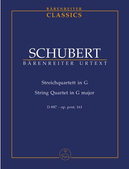 Schubert String Quartet in G Major, D 887, Op. Posth. 161, for 2 Violins, Viola, and Cello. Urtext Edition by Werner Aderhold. Set of Parts.