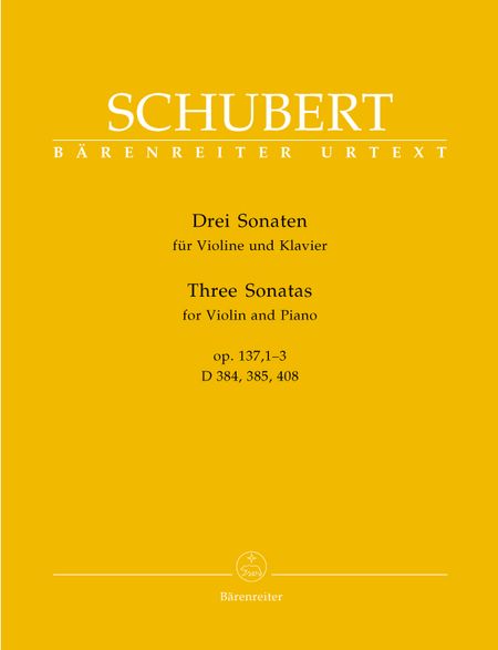 Schubert Three (3) Sonatas (Sonatinas) for Violin & Piano, D 384, D 385, D 408 (Op. 137/1-3). Urtext Edition by Helmuth Wirth.