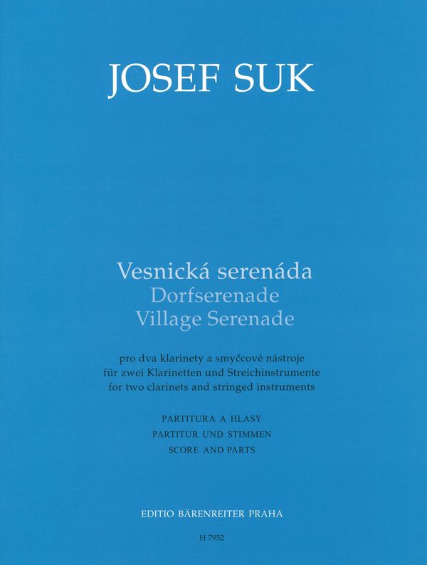 Suk Village Serenade, for Two (2) Clarinets and Stringed Instruments [Violin, Viola, Cello, Double Bass]. Edited by Miroslav Novy. Score and Parts.