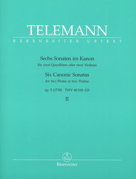Telemann 6 Canonic Sonatas, Op. 5, for Two Flutes (or Two Violins), Vol. 2: Sonatas No. 4 in D Minor, 5 in A Major, 6 in A Minor, TWV 40: 121-123, & Zirkelkanon